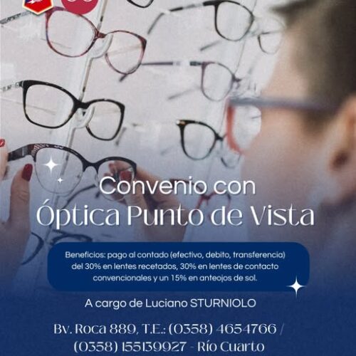 14/10/2025Nuestra entidad firmó un convenio con Óptica Punto de Vista, representada por el Sr. Luciano Sturniolo, ubicada en Bv. Roca […]